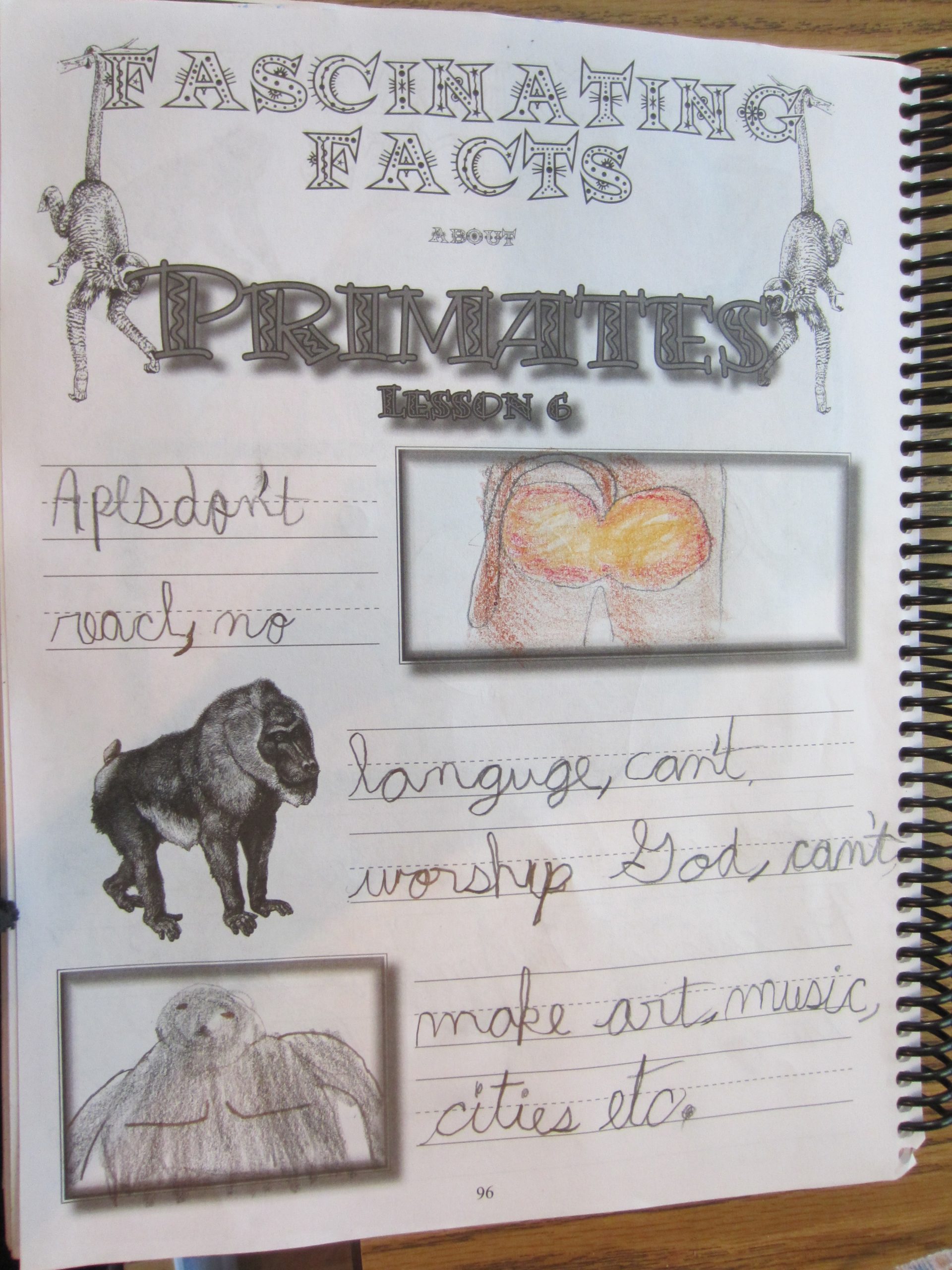In science we have finally moving onto the Primates. So what make a primate a primate. Binocular eyes. Yes that means they have eyes in front not on the side of their heads. They also have opposable thumbs and some even have toes like that too. The bad part is that if the male adult looses a battle and a new male adult take over in power he will kill ALL offspring. That is the life of a primate.